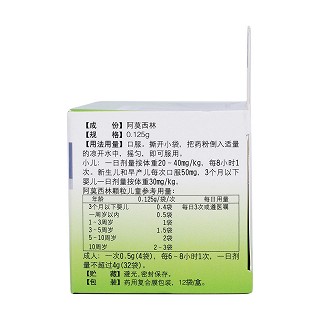 | 产品名称 | 强必林 阿莫西林颗粒 0.125g*12袋 |