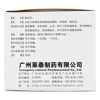 | 产品名称 | 莱泰 猴耳环消炎颗粒 5g*9袋 |