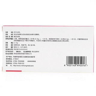 | 用法用量 | 口服。推荐起始剂量为一次1粒(0.15g),一日1次。根据病情可增至一次2粒(0.3g),一日1次。对重度高血压及药物增量后血压下降仍不满意时,可加用小剂量的利尿剂(如噻嗪类)或其它降压药物 |