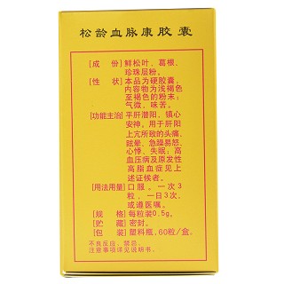 | 产品名称 | 康弘 松龄血脉康胶囊 0.5g*60粒 |