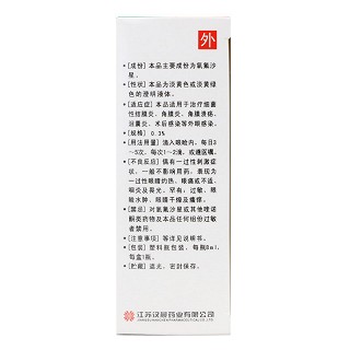 | 不良反应 | 偶有一过性刺激症状,一般不影响用药,表现为一过性眼睛灼热、眼痛或不适、咽炎及畏光。罕有:过敏、眼睑水肿、眼睛干燥及瘙痒。 |