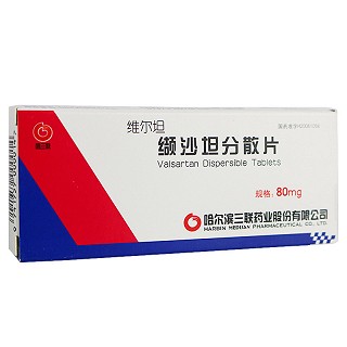 | 用法用量 | 推荐剂量:本品80mg,每天一次。剂量与种族、年龄、性别无关。可以在进餐时或空腹服用(见吸收)。建议每天在同一时间用药(如早晨)。用药2周内达确切降压效果,4周后达最大疗效。降压效果不满意时,每日剂量可增加至160mg,或加用利尿剂。肾功能不全(严重肾衰见禁忌)及非胆管源性、无淤胆的肝功能不全患者无需调整剂量。 缬沙坦可以与其它抗高血压药物联合应用。 |