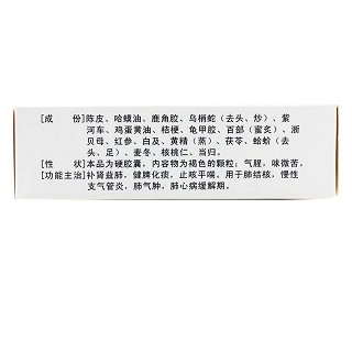 | 主要作用 | 补肾益肺,健脾化痰,止咳平喘。用于肺结核,慢性支气管炎,肺气肿,肺心病缓解期。 |