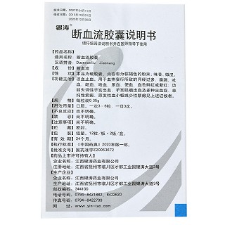| 产品名称 | 银涛 断血流胶囊 0.35g*12粒*2板 |