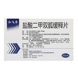 | 产品名称 | 弘飞康 盐酸二甲双胍缓释片 0.5g*10片*2板 |
