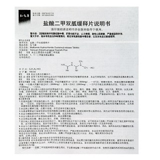 | 注意事项 | 1.在使用盐酸二甲双胍的病人中,由于盐酸二甲双胍的累积有可能发生乳酸性酸中毒。这是一种罕见而严重的代谢性并发症,一旦发生,会导致生命危险,对服用本品的患者应进行肾功能监测和给药以最低有效用量为标准,从而来显著降低乳酸性酸中毒的发生风险。 2.本品禁止嚼碎口服,应整片吞服,并在进食时或餐后服。 3.当患者需要进行放射性研究而使用静脉注射碘化造影剂时,患者应暂时停止服用本品,因为这可能导致急性肾功能改变。 4.本品与磺酰脲类药物合用时,可引起低血糖,应监测患者血糖情况。 5.本品与胰岛素合用会增强降血糖作用,故应调整剂量。 6.应定期监测血糖、糖化血红蛋白、尿糖、尿酮体情况。 7.部分病人发现在临床无症状的情况下,维生素B12的水平低于正常值,这可能是由于盐酸二甲双胍干扰了维生素B12的吸收,这可能导致贫血,虽然可能性很小,但仍建议监测患者的血象,至少每年检查一次血液参数。 8.本品与乙醇同服时会增强盐酸二甲双胍对乳酸代谢的影响,易导致乳酸性酸中毒发生,因此,服用本品时应尽量避免饮酒。 9.发生皮疹等过敏反应者应停止使用本品。 请仔细阅读说明书并遵医嘱使用。 |