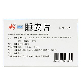 | 产品名称 | 玉林 睡安片 0.57g*12片*2板 |
