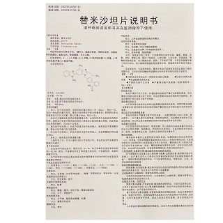 | 用法用量 | 应个体化给药,常用初始剂量为40mg,一日1次,在20-80mg剂量范围内,替米沙坦的降压疗效与剂量有关,若用药后未达到理想血压可加大剂量,最大剂量为80mg。本品可与噻嗪类利尿药如氢氯噻嗪合用,此类利尿药与本品有协同降压作用。因替米沙坦在用药4至8周后才能发挥最大药效,因此在考虑增加药物剂量时需注意用药时间。 |