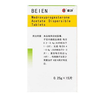 | 产品名称 | 倍恩 醋酸甲羟孕酮分散片 0.25g*15片 |