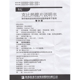 | 产品名称 | 秦龙 克比热提片 0.5g*12片*2板 |