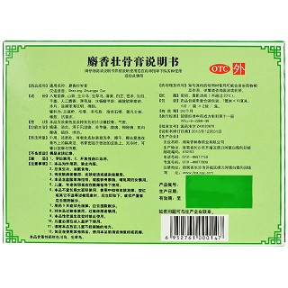 | 注意事项 | 1.本品为外用药,禁止内服。2.忌食生冷、油腻食物。3.有皮肤病者慎用;皮肤破溃或感染处禁用。4.本品含盐酸苯海拉明、硫酸软骨素。哺乳期妇女慎用。5.儿童、年老体弱者应在医师指导下使用。6.雄仁堂麝香壮骨膏不宜长期大面积使用,使用中如有皮肤发痒、变红或其它不适等过敏现象时,应立即取下,症状严重者应去医院就诊。7.用药3天症状无缓解,应去医院就诊。8.对本品过敏者禁用,过敏体质者慎用。9.本品性状发生改变时禁止使用。10.儿童必须在成人监护下使用。11.请将本品放在儿童不能接触的地方。12.如正在使用其他药品,使用本品前请咨询医师或药师。 |