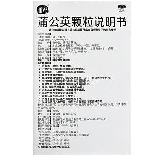 | 注意事项 | 1.忌烟酒、辛辣、鱼腥食物。2.不宜在服润家蒲公英颗粒期间同时服用温补性中药。3.孕妇慎用。儿童应在医师指导下服用。4.脾虚大便溏者慎用。5.属风寒感冒咽痛者,症见恶寒发热、无汗、鼻流清涕者慎用。6.疮疖较重或局部变软化脓时应到医院就诊。7.扁桃体有化脓及全身高热者应去医院就诊。8.服药3天症状无缓解,应去医院就诊。9.对本品过敏者禁用,过敏体质者慎用。10.本品性状发生改变时禁止使用。11.儿童必须在成人监护下使用。12.请将本品放在儿童不能接触的地方。13.如正在使用其他药品,使用润家蒲公英颗粒前请咨询医师或药师。 |