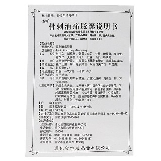 | 注意事项 | 1、骨刺消痛胶囊含乌头碱,应严格在医生指导下服用,不宜大量、长期服用。2、若出现恶心、呕吐、腹痛、腹泻、头昏眼花,口舌、及全身发麻,畏寒,继之瞳孔散大,视觉模糊,呼吸困难,手足抽搐,躁动,大小便失禁应停用,迅速去医院就诊。3、心血管疾病患者和肾脏病患者慎用。 |