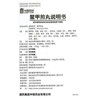 | 产品名称 | 中国药材 鳖甲煎丸 135g*2瓶 |