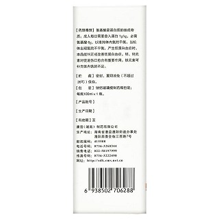 主要原料 | 本品为复方制剂,主要组成成份有17种或18种氨基酸,其中含有8种人体必需氨基酸(色氨酸、赖氨酸、亮氨酸、异亮氨酸、苏氨酸、蛋氨酸、苯丙氨酸、缬氨酸)、多肽、糖和铁、锌、钙等。 |