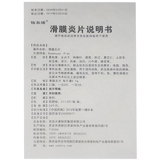 | 产品名称 | 怡尔诺 滑膜炎片 0.5g*12片*3板 |