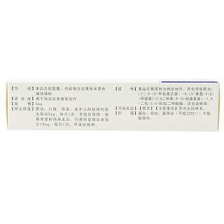 | 禁忌 | 对本品中任何成分过敏的病人禁用。怀孕妇女禁用。由于会引起血压过低等症状,故高空作业、驾驶机动车及操作机器工作时应禁用。 |