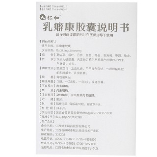 | 产品名称 | 仁和 乳癖康胶囊 0.3g*10粒*4板 |