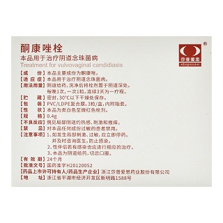 | 用法用量 | 阴道给药,洗净后将栓剂置于阴道深处。每晚1次,一次1粒。连续3天为一疗程。 |