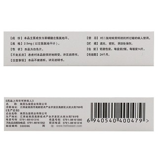 | 产品规格 | 2.5mg*14片*2板 |
