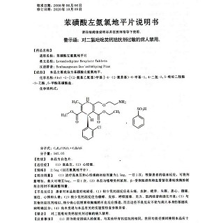 | 主要原料 | 本品主要成份及其化学名称为:(-)3-乙基-5-甲基-2-(2-氨乙氧甲基)-4-(2-氯苯基)-1,4-二氢-6-甲基-3,5-吡啶二羧酸酯苯磺酸盐 |