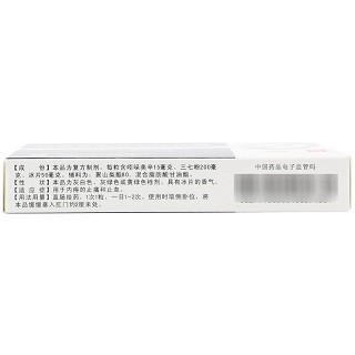 | 主要原料 | 本品为复方制剂,每粒含吲哚美辛15毫克、三七粉200毫克、冰片50毫克。 |