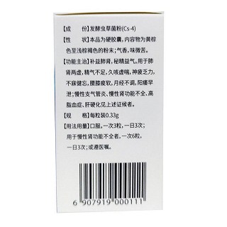 | 主要原料 | 发酵虫草菌粉(Cs-4) |