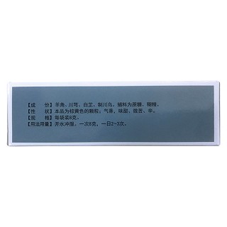 | 主要原料 | 羊角、川芎、白芷、制川乌。 |