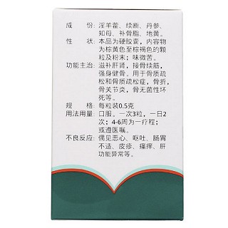 | 主要作用 | 滋补肝肾,接骨续筋,强身健骨,用于骨质疏松和骨质疏松症,骨折,骨关节炎,骨无菌性坏死等。 |