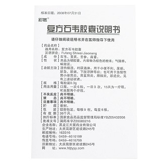 | 用法用量 | 口服,一次5粒,一日3次,15天为一疗程,可连服两个疗程。 |