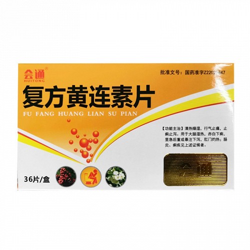 | 注意事项 | 1.饮食宜清淡,服药期间忌酒,生冷、辛辣食物。2.葡萄糖-6-磷酸脱氢酶缺乏的儿童禁用会通复方黄连素片。3.本品含有吴茱萸。 |