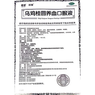 | 注意事项 | 1.忌辛辣、生冷、油腻食物。2.感冒发热病人不宜服用乌鸡桂圆养血口服液。3.本品宜饭前服用。4.高血压、心脏病、肝病、糖尿病、肾病等慢性病患者应在医师指导下服用。5.服药2周症状无缓解,应去医院就诊。6.儿童、孕妇应在医师指导下服用。7.对本品过敏者禁用,过敏体质者慎用。8.本品性状发生改变时禁止使用。9.儿童必须在成人监护下使用。10.请将本品放在儿童不能接触的地方。11.如正在使用其他药品,使用本品前请咨询医师或药师。 |