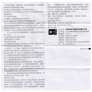 | 用法用量 | 口服,成人一次0.5g,每6~8小时1次,一日剂量不超过4g。小儿一日剂量按体重20~40mg/Kg,每8小时1次;3个月以下婴儿一日剂量按体重30mg/Kg,每12小时1次;肾功能严重损害患者需调整给药剂量,其中内生肌酐清除率为10~30ml/分钟的患者每12小时0.25~0.5g;内生肌酐清除率小于10ml/分钟的患者每24小时0.25~0.5g。 |