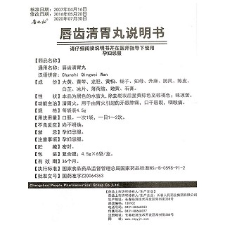 | 性状 | 唇齿清胃丸为黑亮的水蜜丸,除去炭衣后显黄棕色至棕褐色,味凉苦。 |