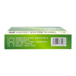 | 注意事项 | 应整个胶囊吞服,不可咬碎,以防在胃液中破坏。 |